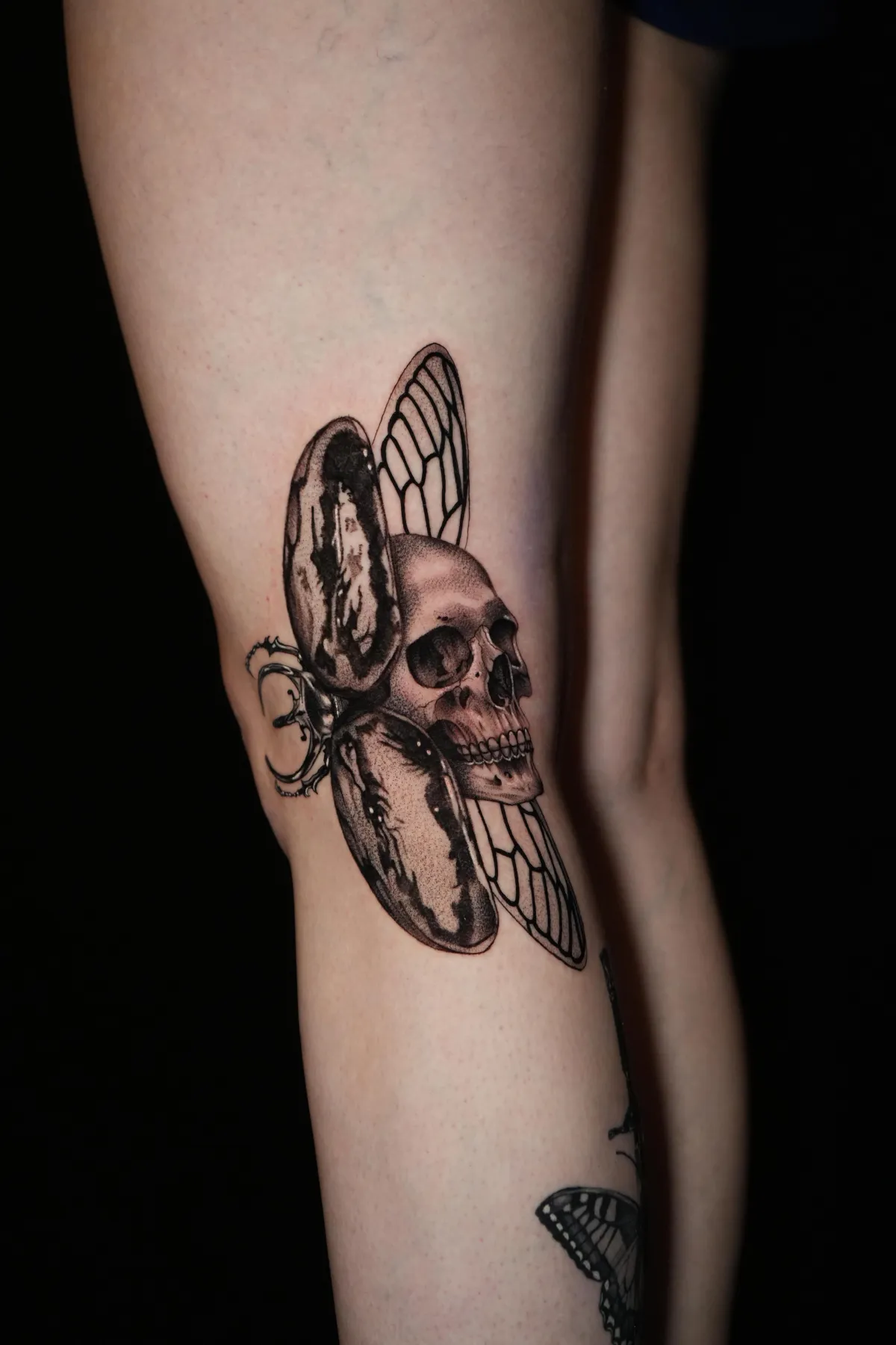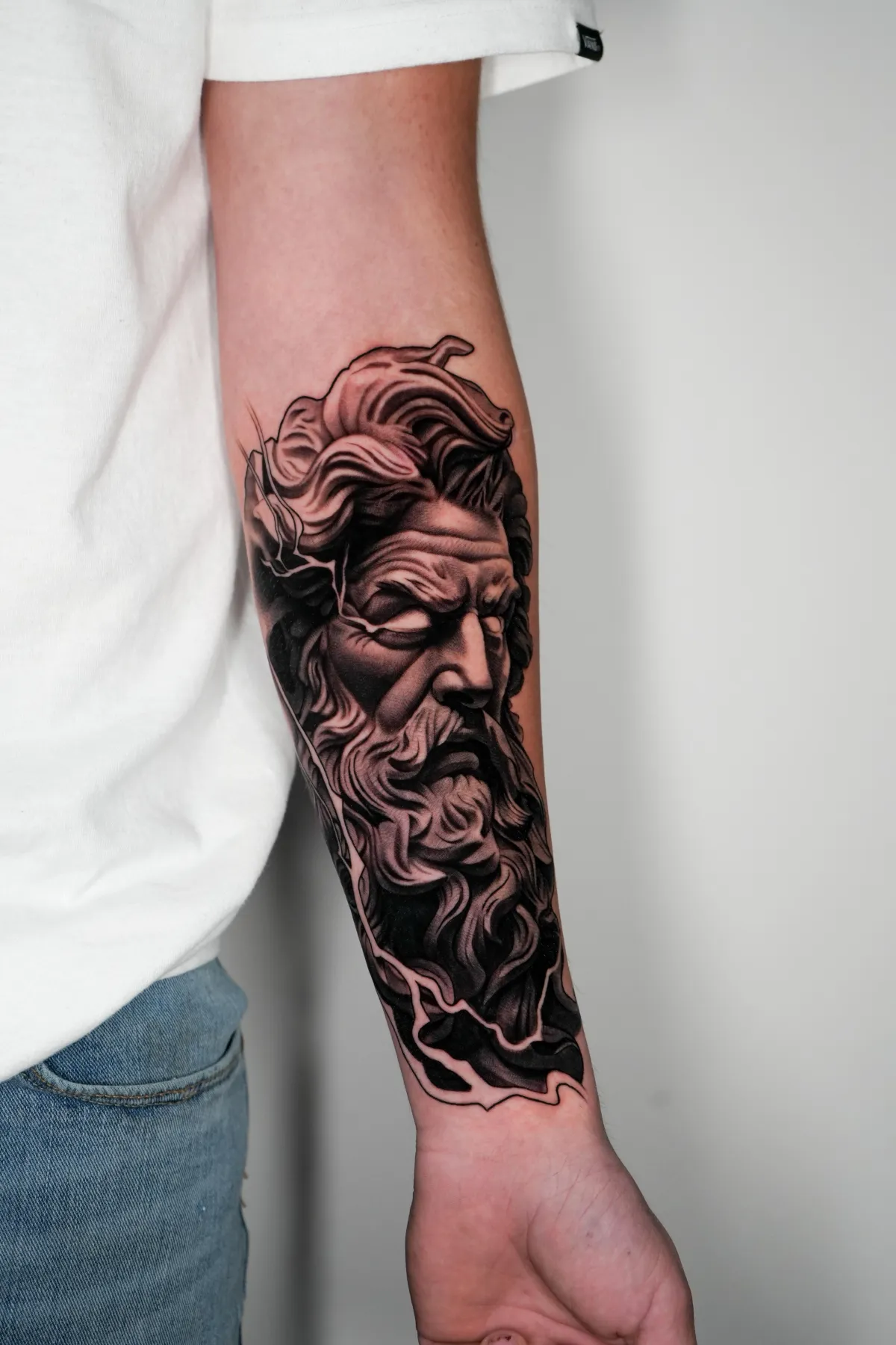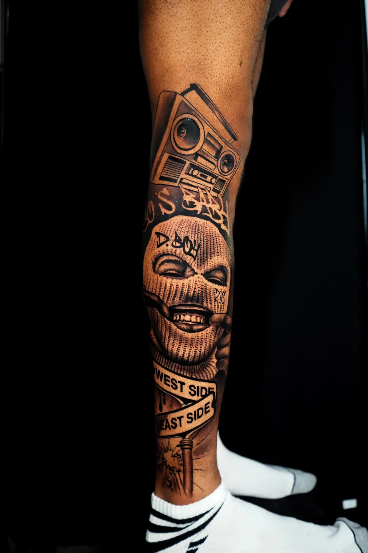 Jesse Reip is a 22 year-old tattoo artist from LaGrange, Ohio. He has been creating art his whole life in a variety of forms, most notably in music—which has racked up over 30 million streams. Now, that same creative energy is being put into tattooing. When he’s not working on his craft, he enjoys going to concerts, playing guitar, and spending time with his friends, family, and two dogs. He aspires to be among the top black and gray realism artists in the region, with macabre surrealism being his strong suit.